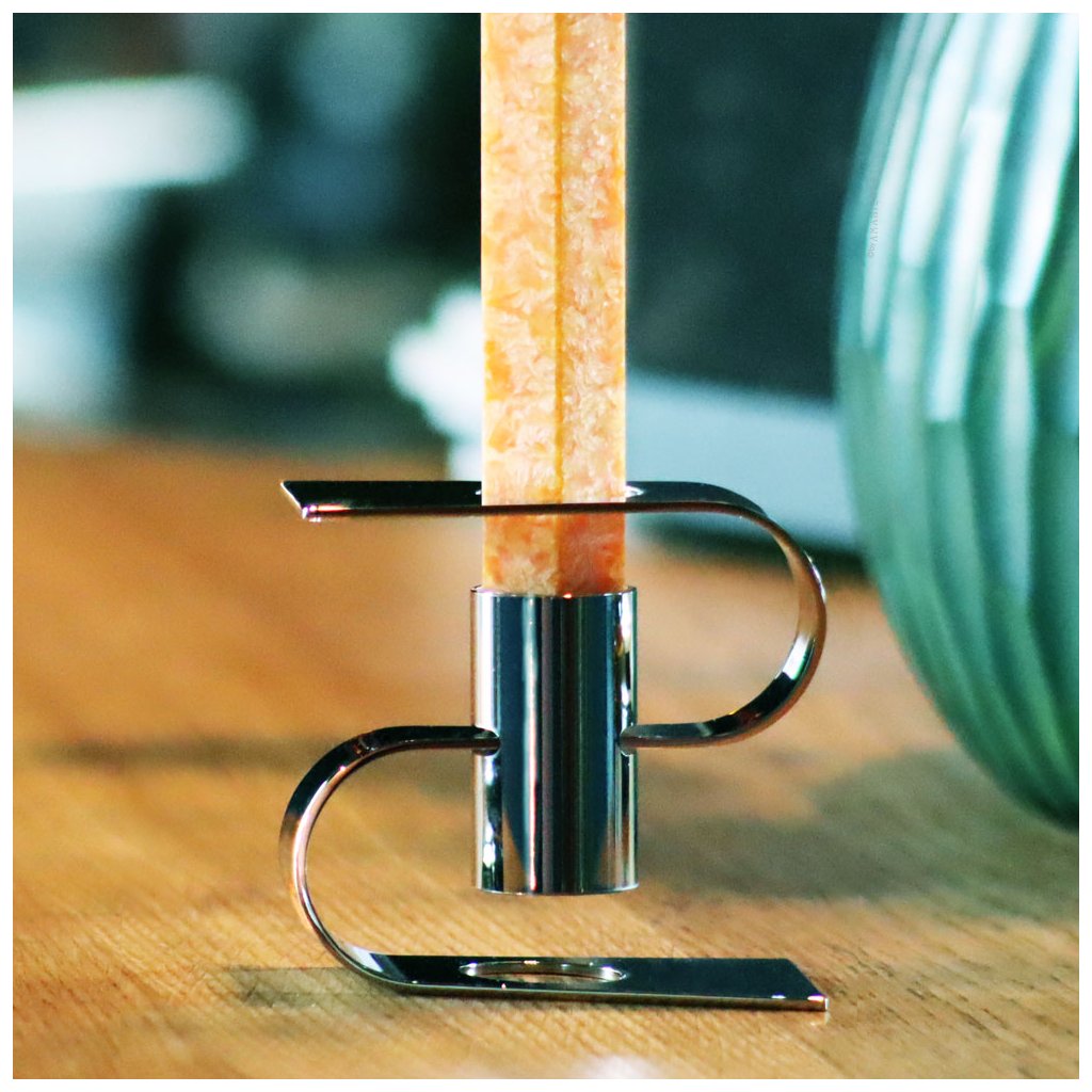 Handle SINUS gently; the intricately chromed surface is soft, so please turn the candle holder thoughtfully and avoid scraping it on hard surfaces.